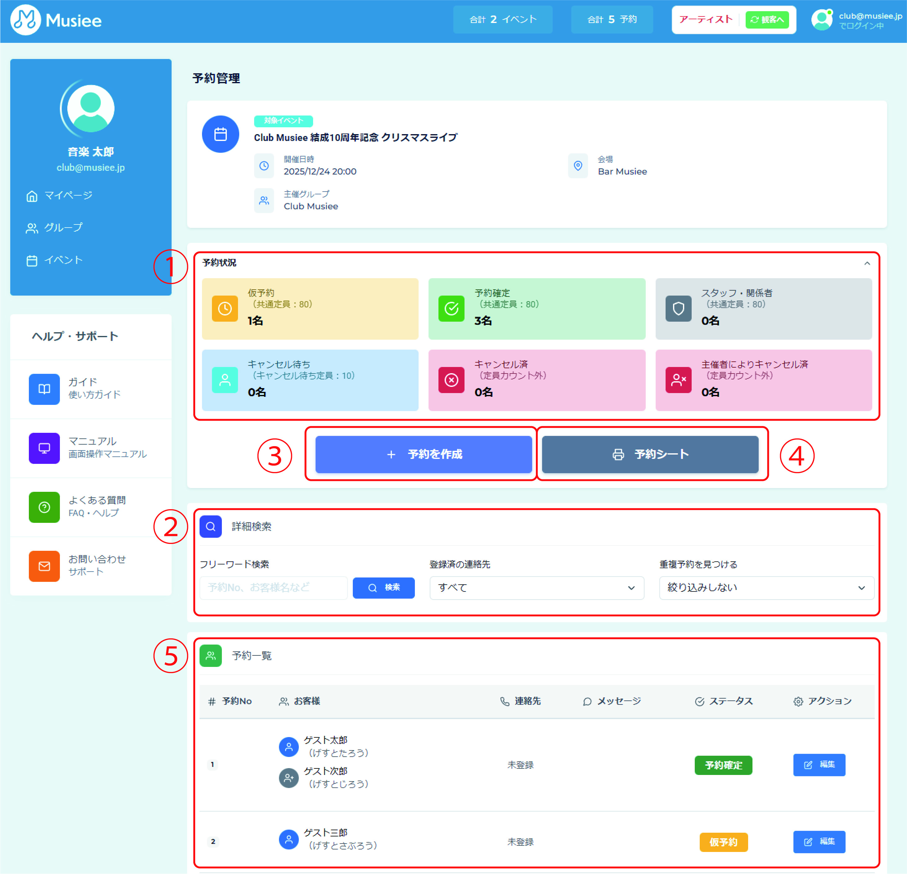 | 連絡先 | 予約者の連絡先が登録されているかどうかが表示されます。 |