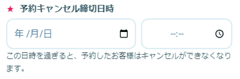 入力欄をクリックすることでカレンダーが表示されます。予約キャンセル締切日時を入力します。※この日時を過ぎると、予約したお客様がキャンセルができなくなります。