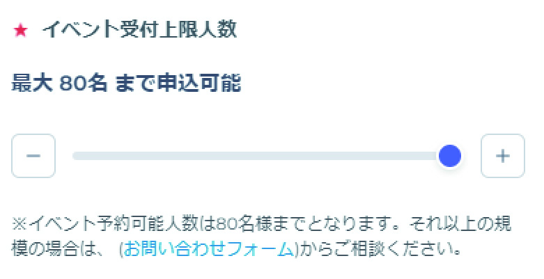 スライドすることでイベントに申し込める最大人数が調整できます。(初期設定は80名)